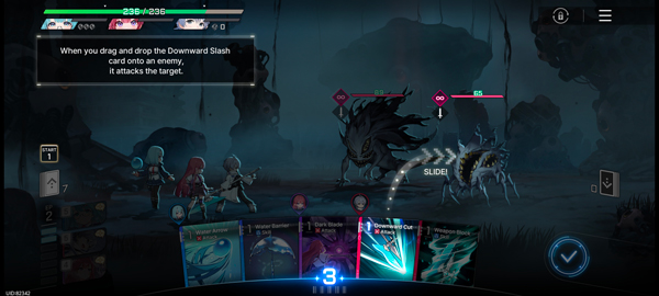 6、游戏采用卡牌回合制策略战斗,玩家需通过抽取卡牌选择敌人进行攻击;