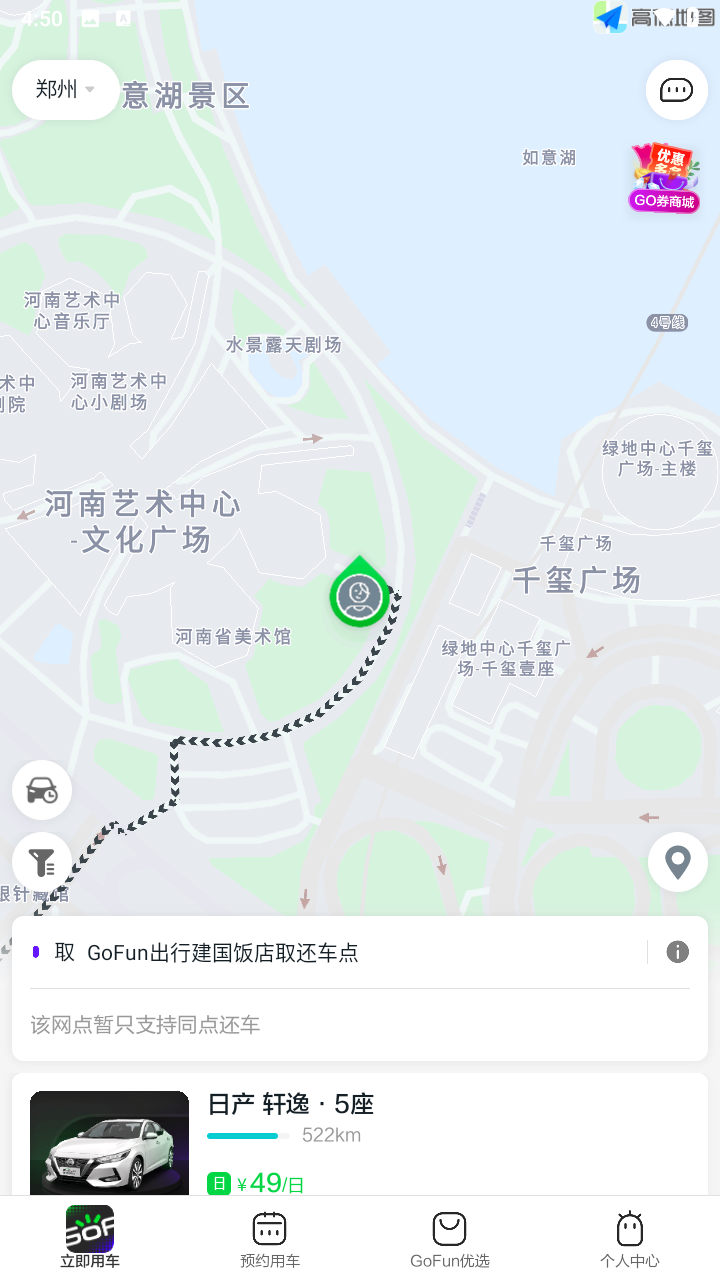 Gofun出行是一款好用的新能源汽车租赁平台,由北京首汽智行科技有限公司倾力打造,能够为用户提供靠谱的新能源智能汽车租赁服务,可以实时定位附近可用车辆,支持实时地图在线自助选车预约,一键智能扫描认证即可租赁车辆,非常的便利!并且还有专门的车险以及各种专业保障服务,为您提供安心又优质的新能源智能汽车驾驶体验!有需要的话就点击下载使用吧!