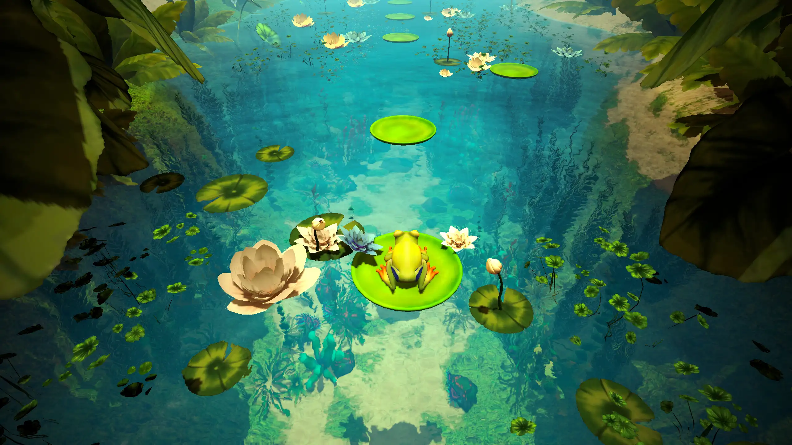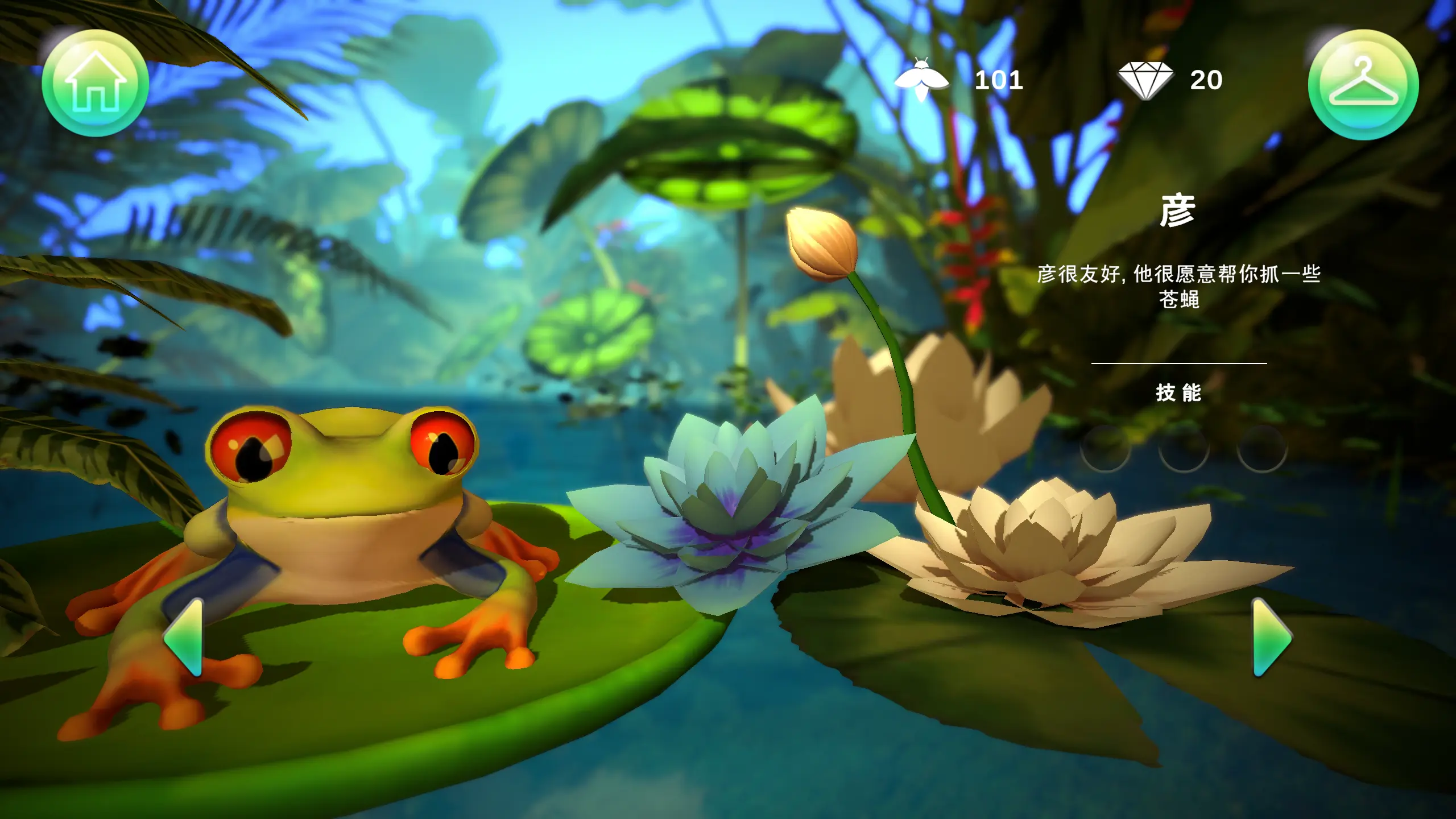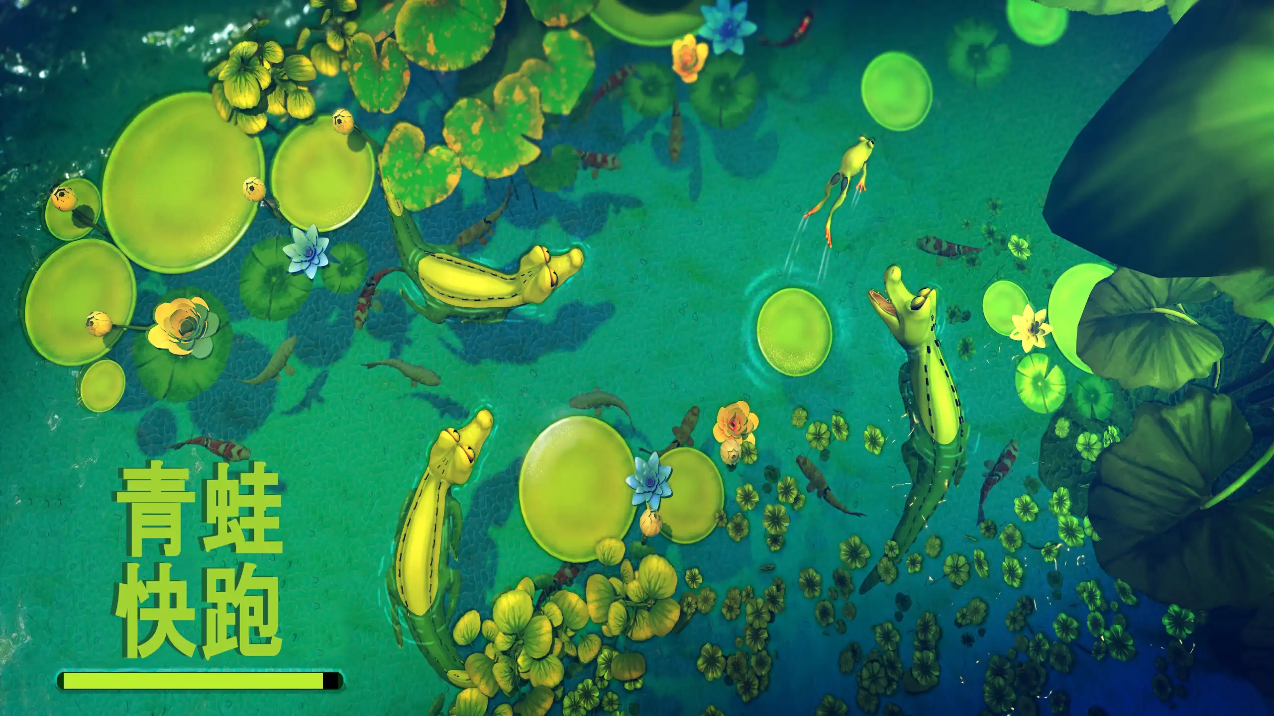 2、控制小青蛙跳跃到前方的荷叶上来躲避鳄鱼的攻击。