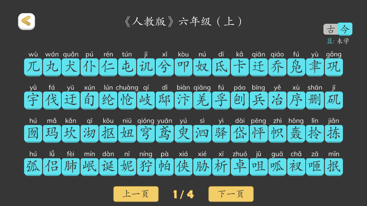 1、识字模块功能,大量的古诗、汉字让孩子进行学习