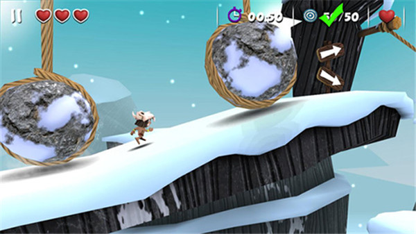 第一次进入游戏,笔者就不禁被鲜艳的3D画面所折服,游戏的画面非常清爽干净,各种颜色的搭配相当舒服、养眼。游戏提供了森林、雪山、洞穴三大关卡,每一大关的场景设计都相当出色。