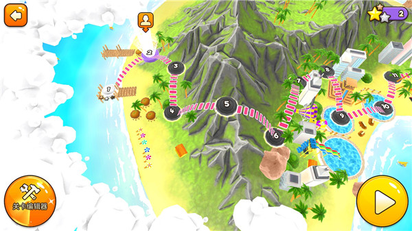 这款游戏是以场景关卡制,通过达到解锁要求来解锁场景,而关卡则只需通过便可以解锁下一关,并不需要分数的限制。游戏中也有奖励制,如图中下方的宝箱,解锁之后就可以开启。