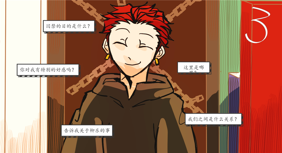 2、在三个问题这里,【你对我有特别的好感吗】和【告诉我关于柳乐的事】必须选择,剩下一个随便选择。