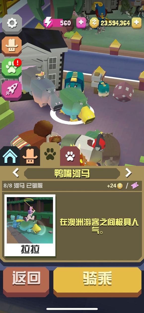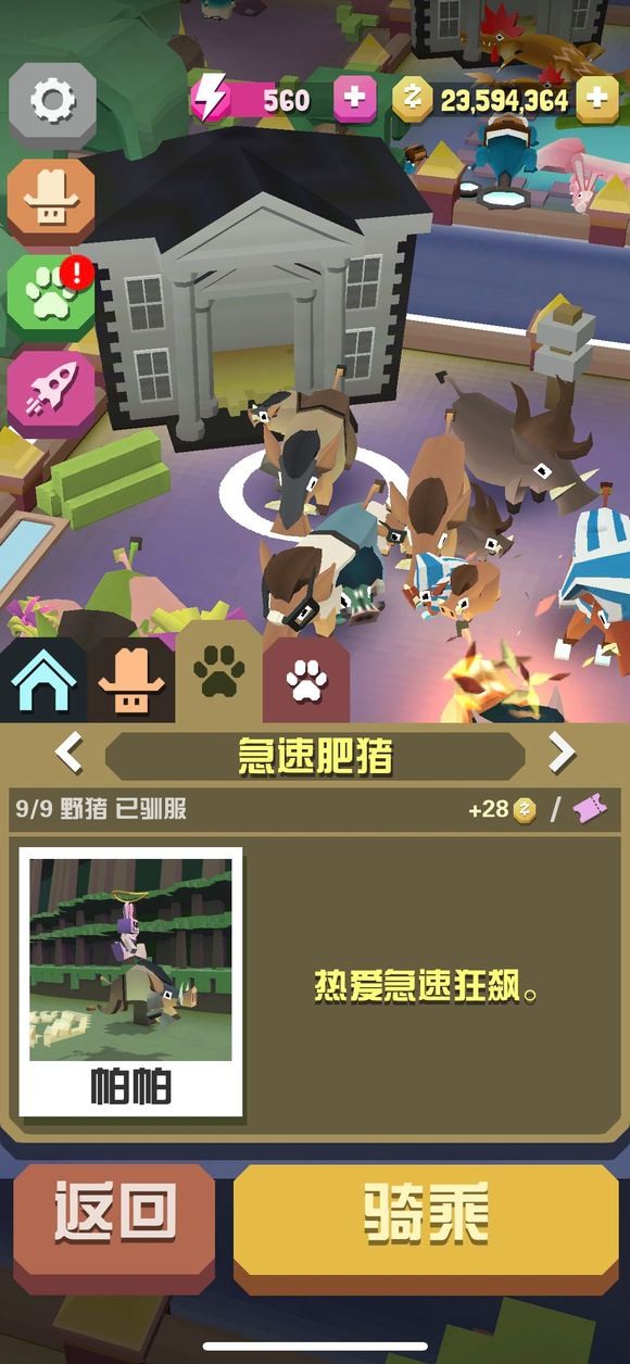 疯狂动物园,这是一款热门经典好玩的3d虐心跑酷手游。游戏将像素画风、跑酷、经营以及养成等多种元素结合在一起,带给玩家丰富的游戏体验。进入游戏,玩家将化身一位牛仔女郎,玩家需要在不同的地图内通过骑乘的方式驯服各种动物,随着经验的提升将解锁更多地图区域。玩家可以建设一座动物园,通过展览宠物们来赚取资金,从而装饰升级自己的动物园。游戏玩法丰富有趣,快来下载玩耍吧!