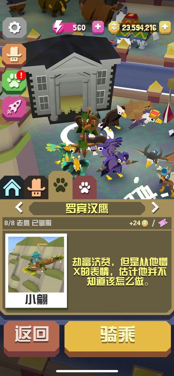 3、一路上还有鸵鸟和天马,都能通过狂奔跳上它们的背部,每局都有需抓捕的数量,骑到终点,就能与它合照并且将它驯服。