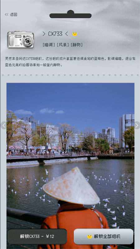 3、支持导入相册图片,添加复古胶片相机滤镜以一键呈现复古感。