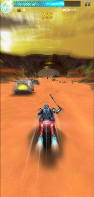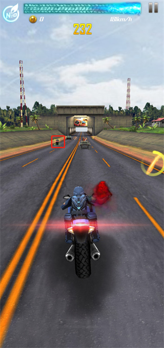 2、游戏中玩家需要通过左右倾斜手机来控制摩托的移动;