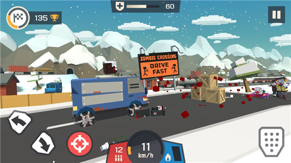 5、类似于死亡战车,玩家需要僵尸凶猛的越野武装车,去碾压路上的所有僵尸