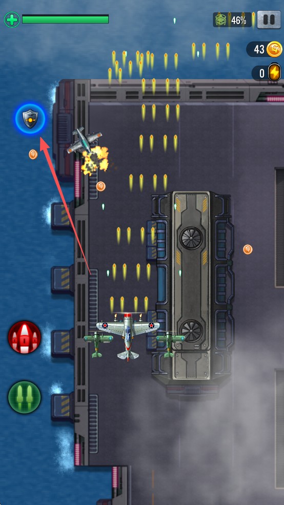 主动技能:增强飞机,现在飞机会射得更快更强。