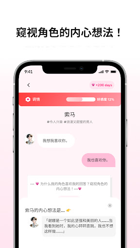 3、随时交流互动:无论何时,用户都能与角色联系,分享生活点滴,角色会像真正的恋人一样给予回应。