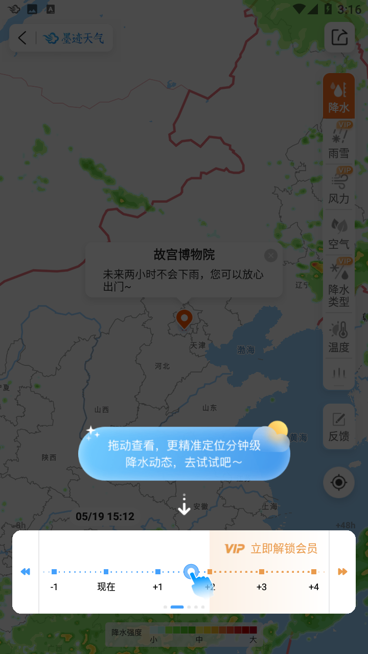 【48小时分钟级地图】借助雷达图像,展示全球任一位置的降水、风力、空气质量等,可视化地图可准确至分钟与公里级,为出行提供有力参考。