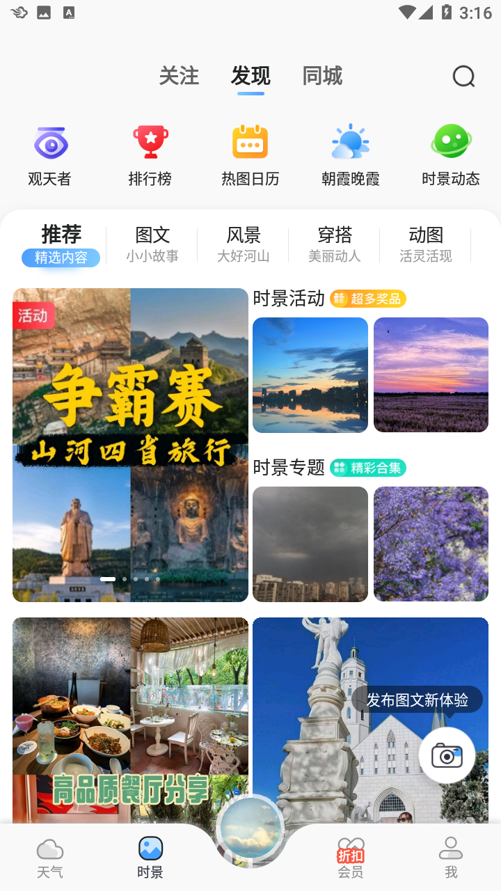 5、时景板块当中拥有众多用户分享的图文动态,你也可以自己发帖分享;