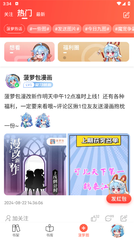 漫客栈是一款资源丰富、更新及时的漫画阅读app。在这里,我们可以轻松找到关于恋爱、校园、都市、热血、悬疑等类型的埋怨作品。平台内的漫画资源更新频率很高,热门连载基本都会同步更新,让追更党不用到处找资源。同时,漫客栈还设有多种人气榜单和分类推荐,根据阅读热度和用户喜好进行整理,帮助读者快速发现优质漫画。所有的漫画资源也都是可以免费下载至本地的哦,即使在没有网络的情况下也能随时观看,帮助大家节省了不少的流量花费。