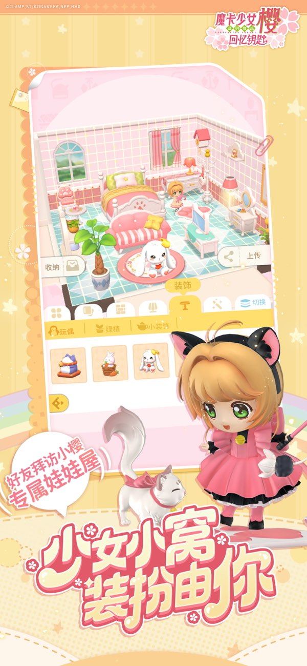 至于涉及库洛牌的剧情,自然是被做成了游戏的主线剧情。相比动画内容,游戏的主线节奏更快,只走重要的主线内容,但经典场面应有尽有,比如小樱在地下室唤醒风导致所有库洛牌飞舞逃逸,第一次变身用牌以及每次抓库洛牌时的变装建模等等。