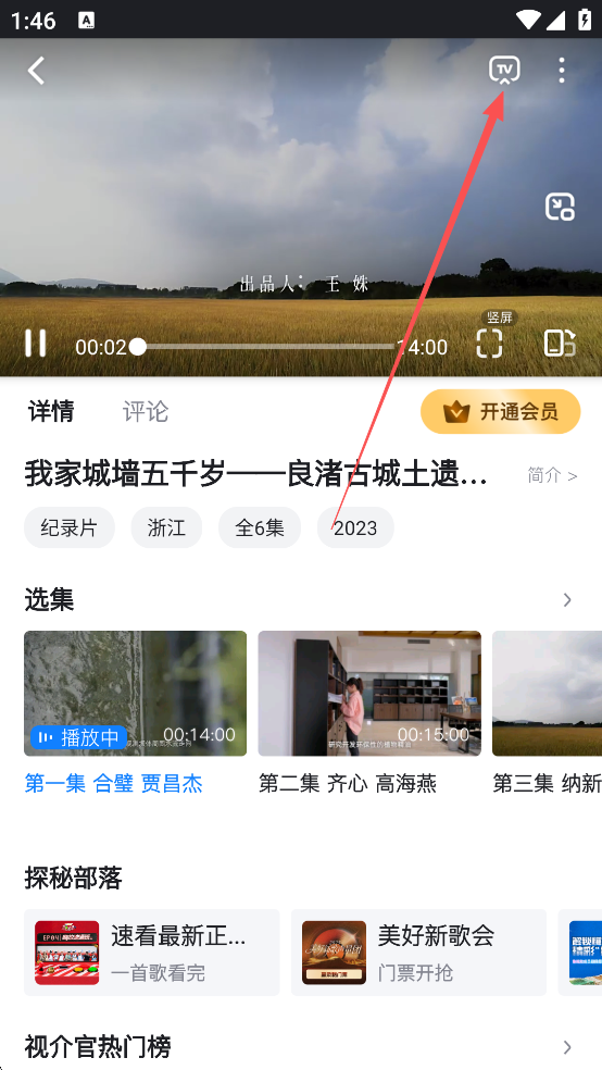 2、点击任意想投屏的视频内容,然后点击播放窗口右上角的“TV”图标。