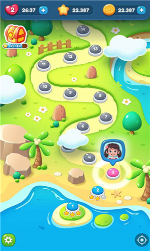 1、游戏内的消除玩法都是非常考验玩家的技术,而且这款游戏内的趣味性也是非常的高,更多闯关模式等待开启