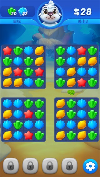 2、完成图块配对消消乐关卡,解锁新的主题设计水族箱!