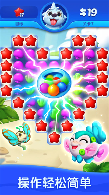 1、点击匹配三个同色图块以消除! POP~ 操作简单有趣!