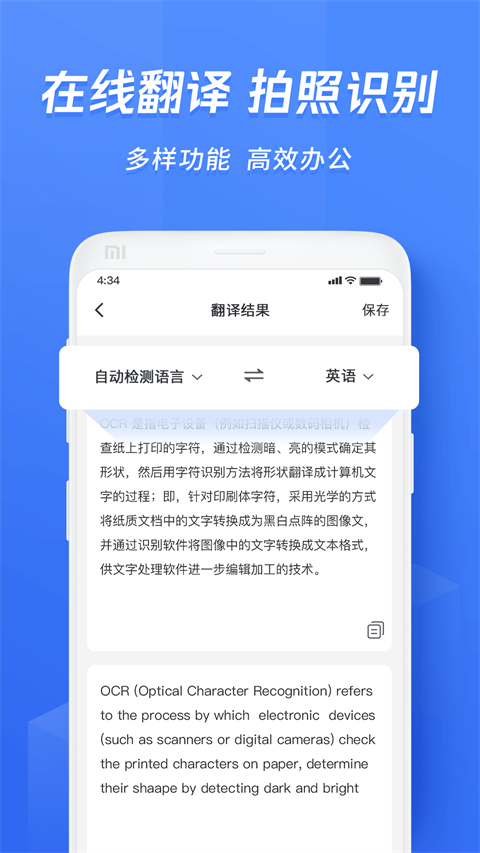 1、精准识别文字:采用先进的OCR识别技术,高达99%的识别精度,轻松实现文档数字化