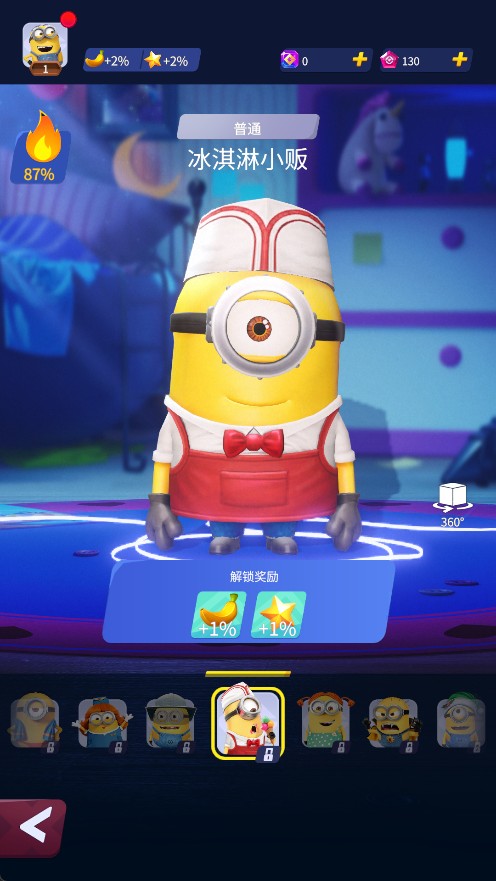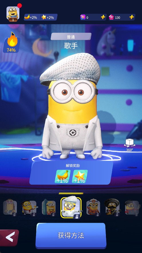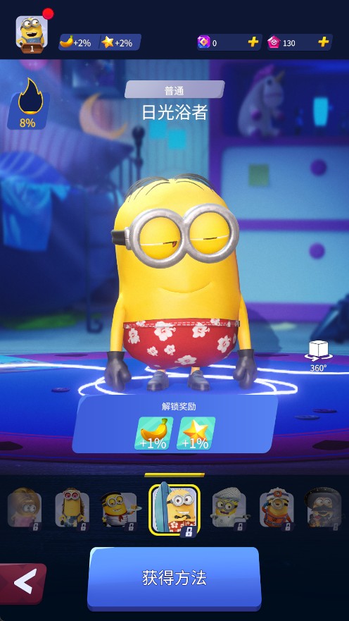 3、每件服装都有特殊技能、道具和不同的风格,可以帮助小黄人完成它们的卑鄙任务。
