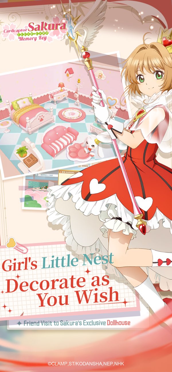 收集养成小小樱,一步步解锁各种造型小小樱的专属pose,装点自己的个性小屋空间。【装修娃娃屋,打造个性房间】小小樱、库洛牌化身小屋摆件,装点个性风格娃娃屋。获得风格多样的家具,DIY专属“少女心小基地”。