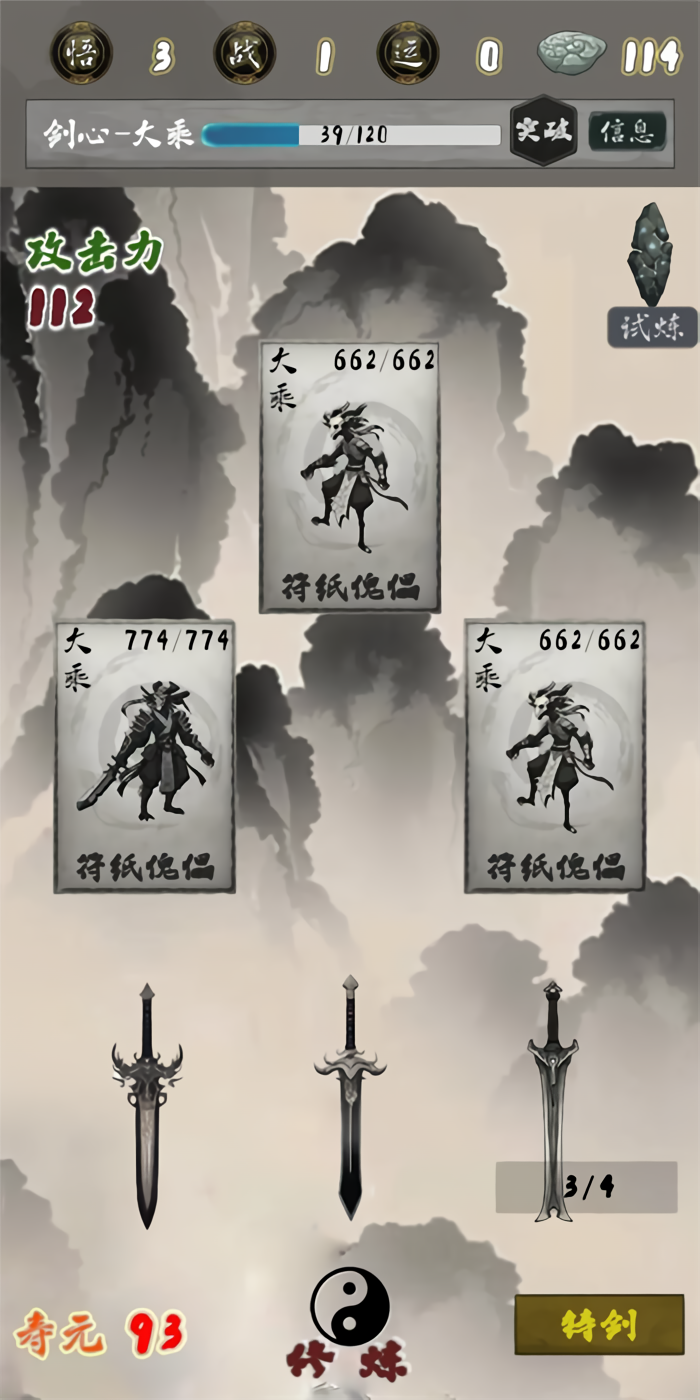 3、运用已掌握的剑招与心法,在即时战斗中灵活组合技能以应对强大敌人,并挑战各种“心境试炼”与“外劫”,克服瓶颈以实现境界突破,获得质的飞跃。