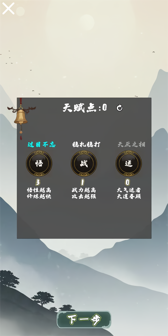 1、选择天赋后并踏入这个灵气渐衰的修真世界,你将从一段奇遇开始,接触远古道痕,并跟随指引学习基本的移动、交互与战斗操作,初步了解这个世界的生存法则。