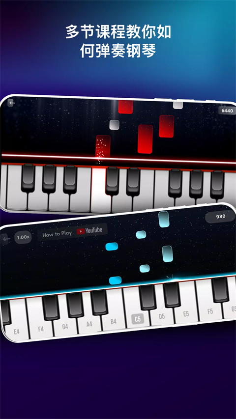 《真实钢琴模拟》(Real Piano)是一款模拟现实钢琴的休闲模拟类游戏。游戏中1:1还原了真实的钢琴供玩家们使用,同时,还有100节由浅入深的钢琴专业课程,教玩家从入门到精通,从基础音符到高阶乐谱,一步步提升自己的琴艺,成为钢琴大师。另外,游戏中还提供了丰富的经典曲库,玩家们可以下载并学习,也可以随意谱子演奏。游戏中除钢琴外,还有许多其他乐器的音色。