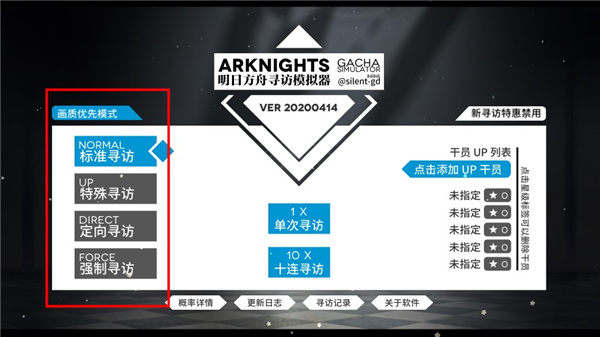 2、进入模拟器之后,我们在屏幕的左方可以看到四种寻访模式;