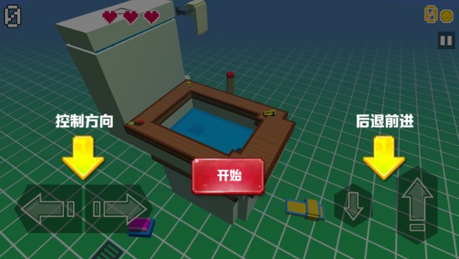 2、左下角控制碰碰车转向,右下角控制碰碰车前进和后退,需要将自己以外的碰碰车撞出场地从而得分。
