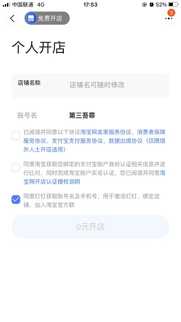 登录淘宝账号:若没有淘宝账号,手机验证码登录之后会自动生成淘宝账号填写店铺名:店铺名可修改,无需纠结勾选协议,点击【0元开店】