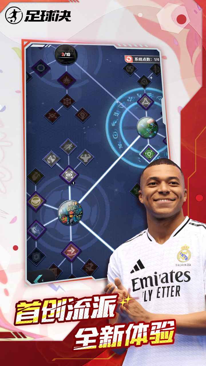 1、足球决专属流派全新升级。自由搭配战术与技能,策略对决全面升级。