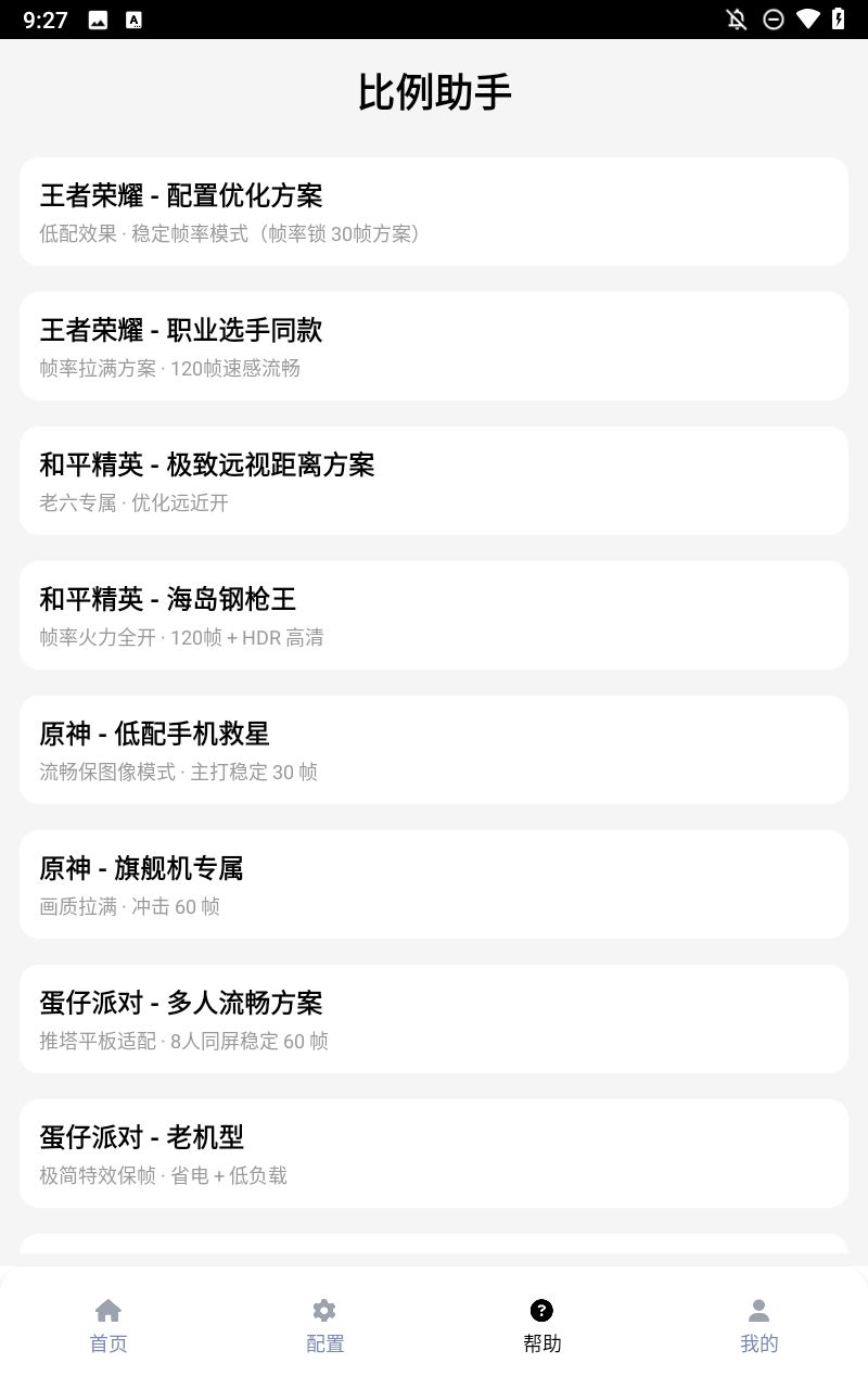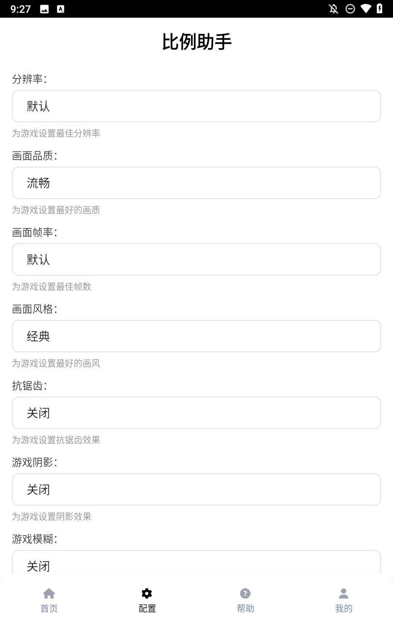 比例助手是一款玩游戏时必备的游戏辅助工具,可以帮助我们调节游戏的画面大小、画质、帧率等设置,让我们玩游戏的时候对眼睛更加的友好。软件使用的方法十分的简单,不需要繁琐的更改root权限的操作,新手小白都可以一键开启。软件适配所有市面上的大型游戏,不管是什么游戏的玩家都可以下载使用,如果你实在不知道怎么调整才是最佳的状态,软件内直接配有预设好的数据,你直接挑选自己想要的那一组点击开启,打开游戏就可以适配了。