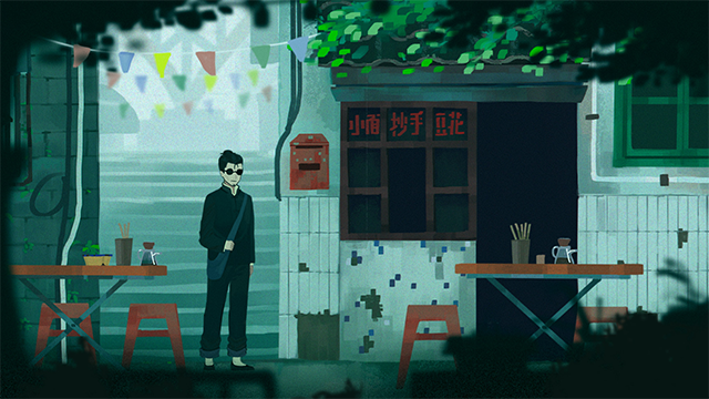 1、美术风格:采用墨绿色水彩色调与中式画风,结合复古海报、老式电视、录像带等元素,营造出阴森诡谲的氛围。