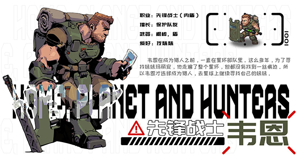 先锋战士——韦恩在成为猎人之前,一直在星环部队里。这么多年,为了寻找妹妹玛丽安,他走遍了整个星环,但都没有找到一丝痕迹。所以韦恩才选择成为猎人,去星球上继续寻找自己的妹妹。