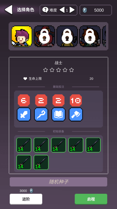 一开始可以创建的角色只有一个战士,后面的需要自己解锁。