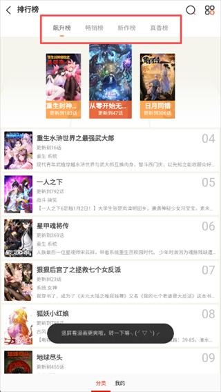 3、在这里可以选择查看飙升榜、畅销榜、新作榜、真香榜等各大榜单内容。