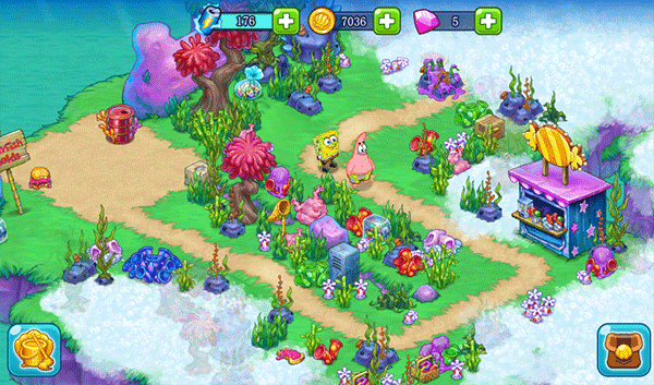 1、打造自己的比基尼泳裤,前往海绵宝宝世界中粉丝最喜欢的地方,例如水母田、新海带城、亚特兰蒂斯等!