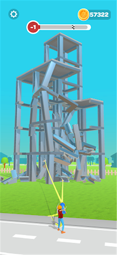 1、体验更多精彩的挑战方式,借助多个不同的游戏道具来拉倒上面的建筑物。