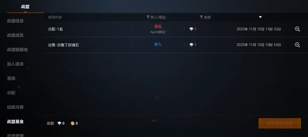 “战盟基金”依然由管理选择人员进行分配,管理可以将这一部分的钻石作为奖励,奖励给战盟做出突出贡献的成员!所有战盟基金分配所对应的操作人员都可查看,确保相对的公平公正!