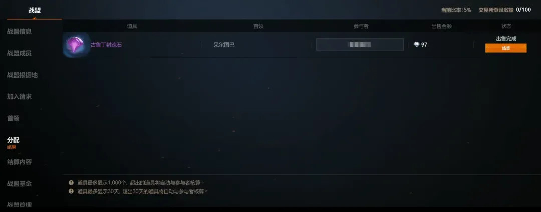 在选择开启分配模式的情况下,战盟成员击杀BOSS后掉落的物品会由【战盟管理】统一操作,除了可以将掉落物分配给同盟内的指定成员,管理还可以将道具挂在交易行出售!出售所获的流通钻石,同样可以分配给同盟内的全体成员或是指定成员。