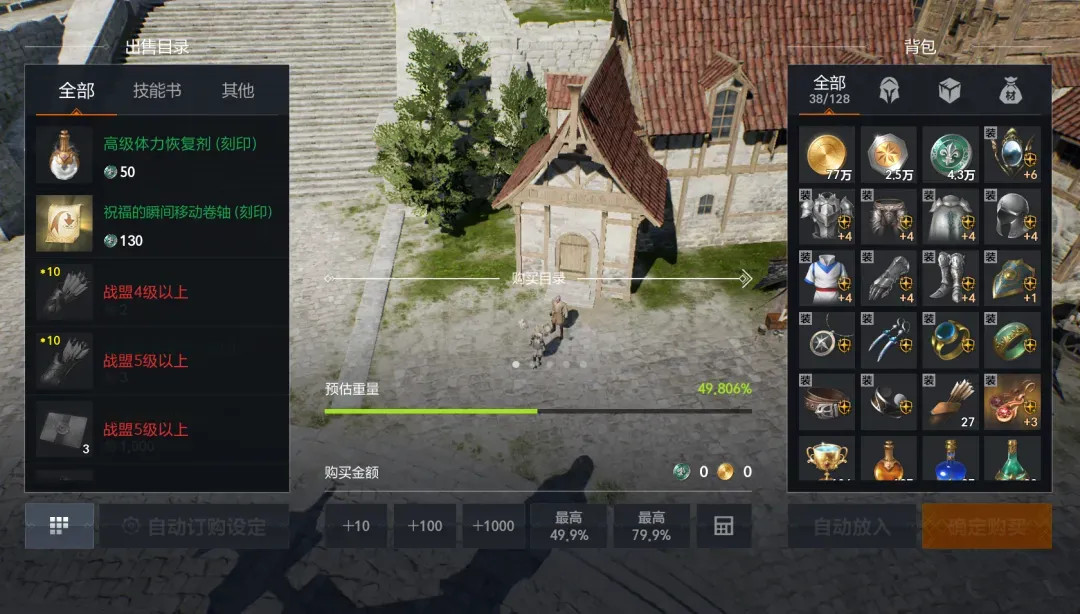 此外,咱们还能在杂货商人处花费1800金币购买一张“根据地返回卷轴”,一旦在战斗中遇到危险,随时可以传送回根据地保命。