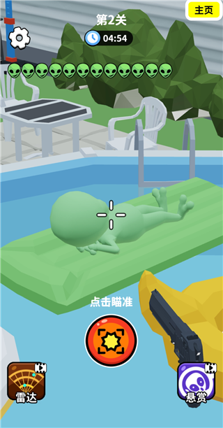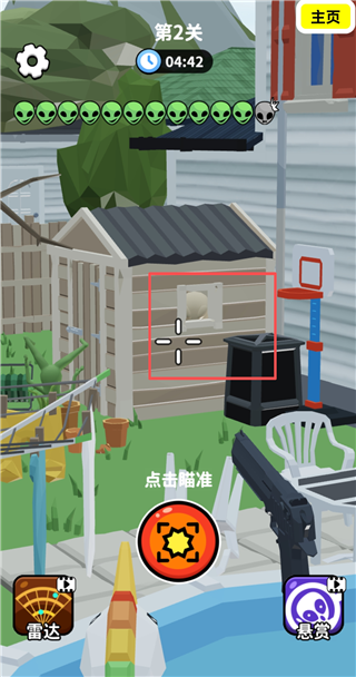 3、场景里藏着不少外星人,有些会假扮成小物件,得仔细看才能找出来。玩家要借助放大视角或者道具来帮忙辨认,别漏掉目标。