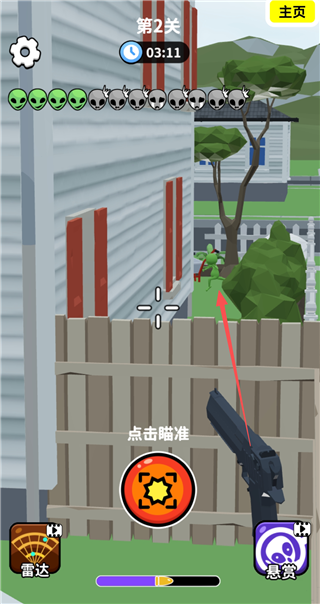 2、瞄准系统会随着操作熟练度的提升而优化,助力玩家精准打击目标。玩家连续击中同一区域即可积累经验值,进而解锁更高精度的瞄准模式。升级后的瞄准系统能够更有效地应对高速移动的外星人。