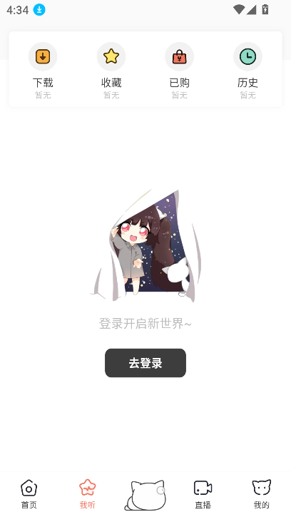 3、如果想听直播的话,点击直播,里面有海量的声优主播等着你