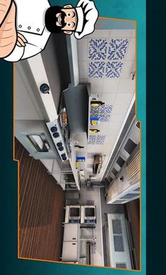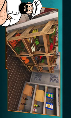 4、厨房卫生,打烊后,玩家可以根据需要进行厨房的清理工作,包括污渍的清理以及食材等道具的摆放整理等;