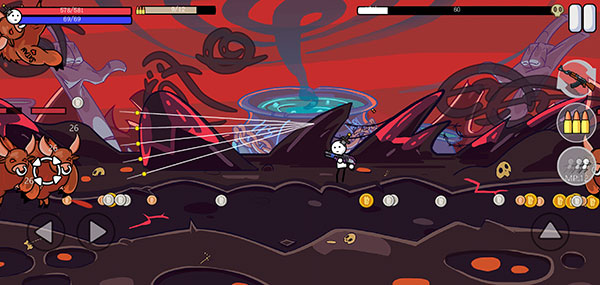 2、你的身边有一堆恶魔、蛮牛、火球等奇奇怪怪的生物向你进攻。