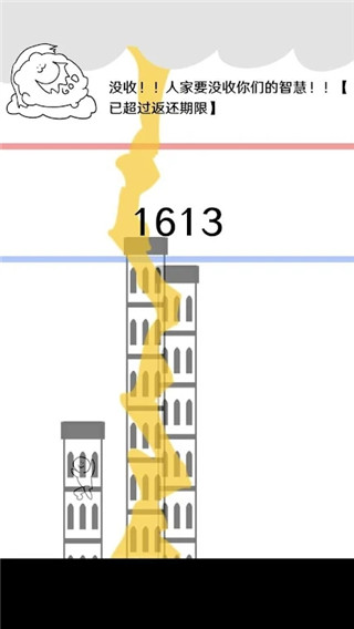 3、当塔顶越过红线时则会Game Over,塔顶没到蓝线时降下天雷,在一段时间内没法使用天雷。
