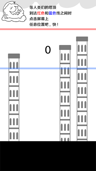4、如果人类建造的塔超出了红线则游戏失败