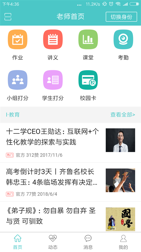 【教育】板块每日更新,提供海量教育资讯,内容涵盖教育政策,名师交流,教学案例分析等,老师们可以点赞并发表您的真知灼见!